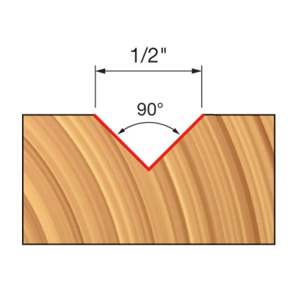 The Diablo 1/2 in. Carbide V Grooving Router Bit delivers a smooth, V-shaped groove that serves as an engraving or a decorative accent. The durable carbide body features a non-stick coating for reduced friction.