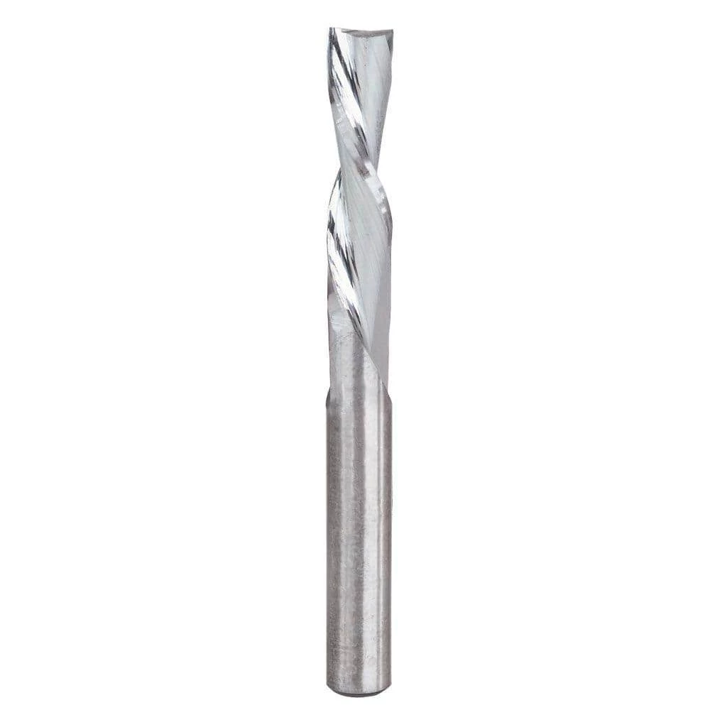 A kickback-reducing design and high-grade composition make this Diablo 1/4 in. x 1 in. Carbide Up Spiral Router Bit one smooth-operating accessory. Suitable for use on wood and manmade material, this durable carbide bit produces safe, precise cuts and features tri-metal brazing to reduce vibrations and impacts.