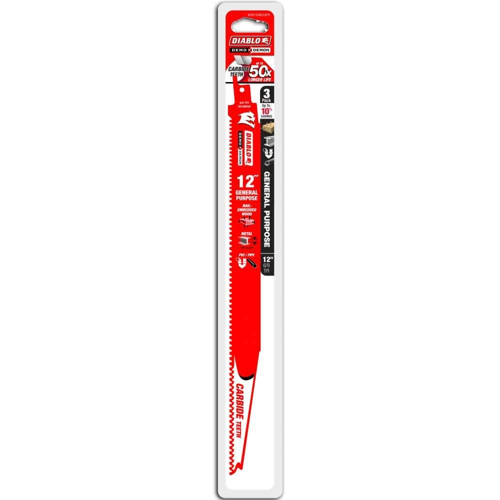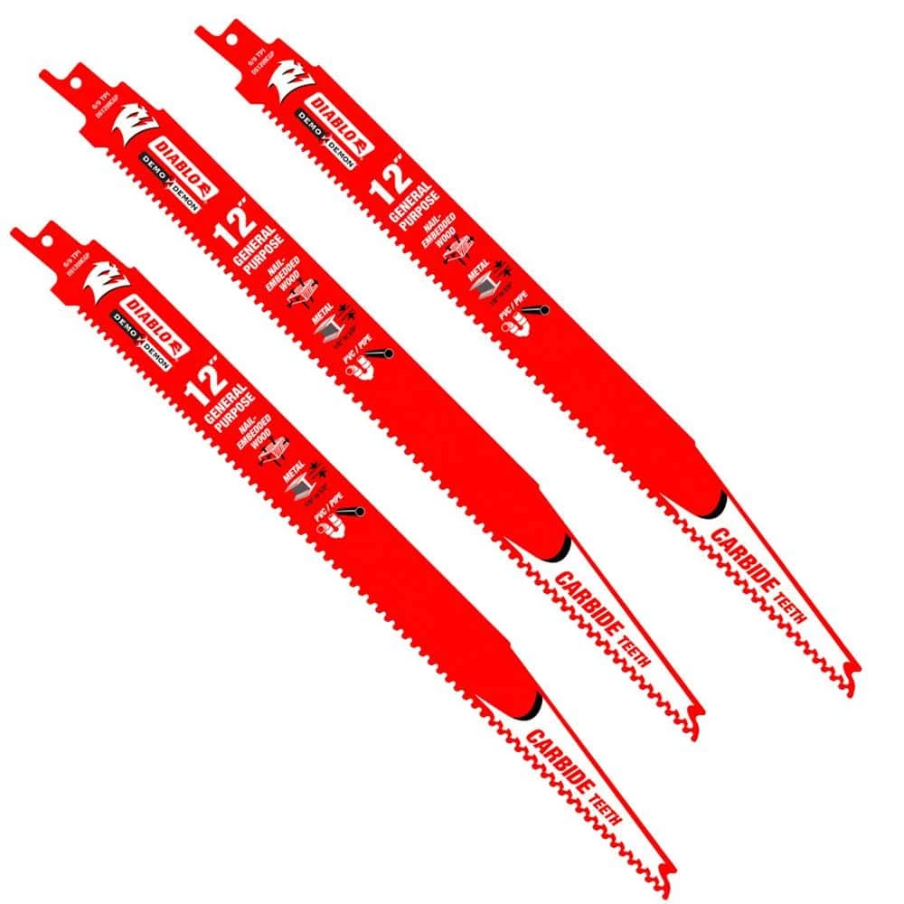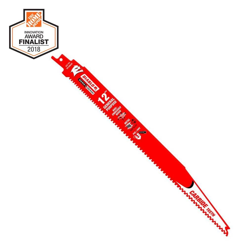 Diablo’s new Demo Demon carbide general purpose reciprocating blades are the first on the market specifically designed for both wood and metal. These blades include exclusive features that deliver unmatched 50 times longer life in both wood and metal cutting applications. With an oversized blade body, variable tooth design, and PERMA-SHIELD non-stick coating, this blade is ideal for cutting nail-embedded wood and ferrous metal applications with a 3/32 in. 1/4 in. T.