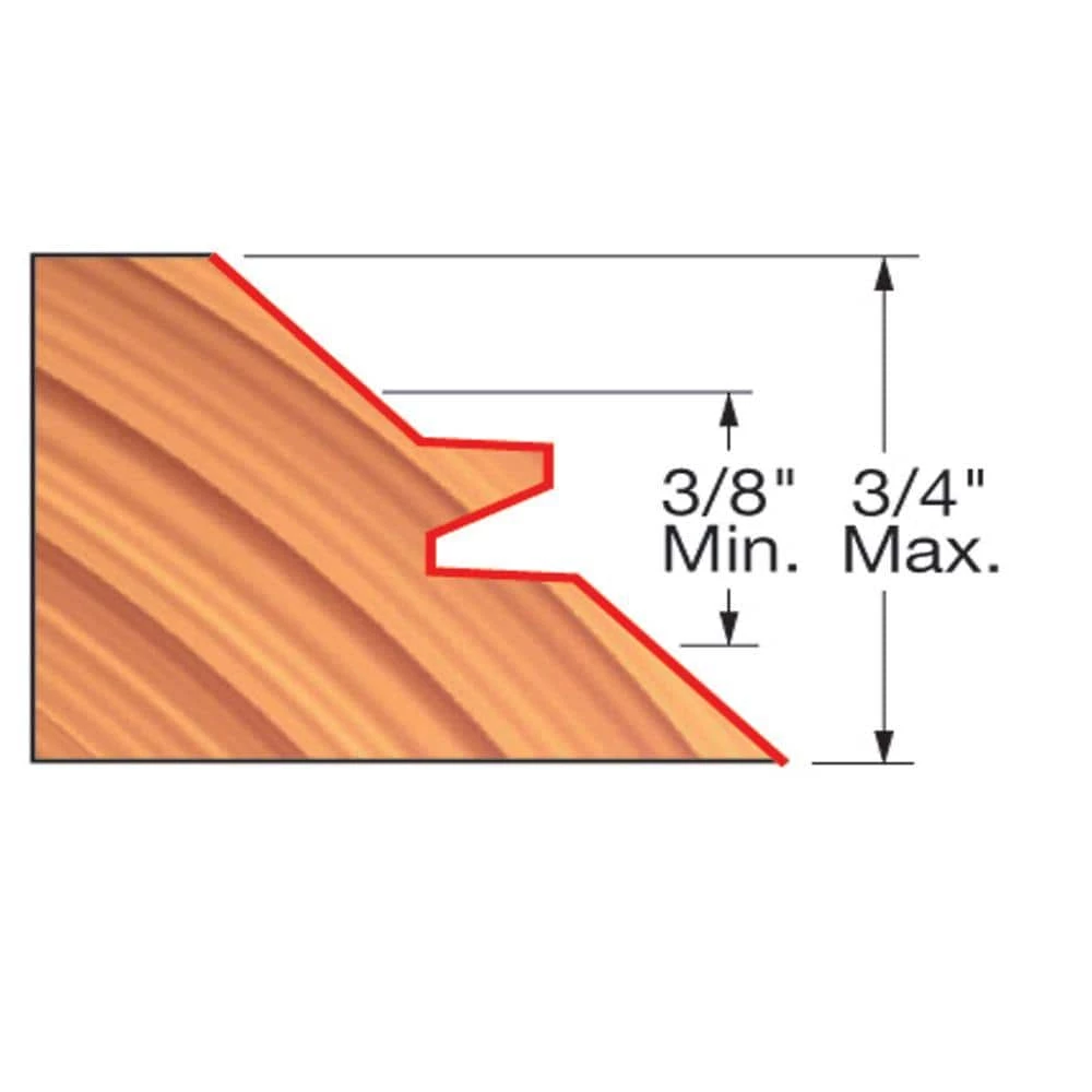 The Diablo 3/4 in. Carbide Lock Miter Router Bit features Tri-Metal Brazing for strength and impact resistance. The Kick-Back Reducing delivers a precise cut ideal for creating interlocking joints.