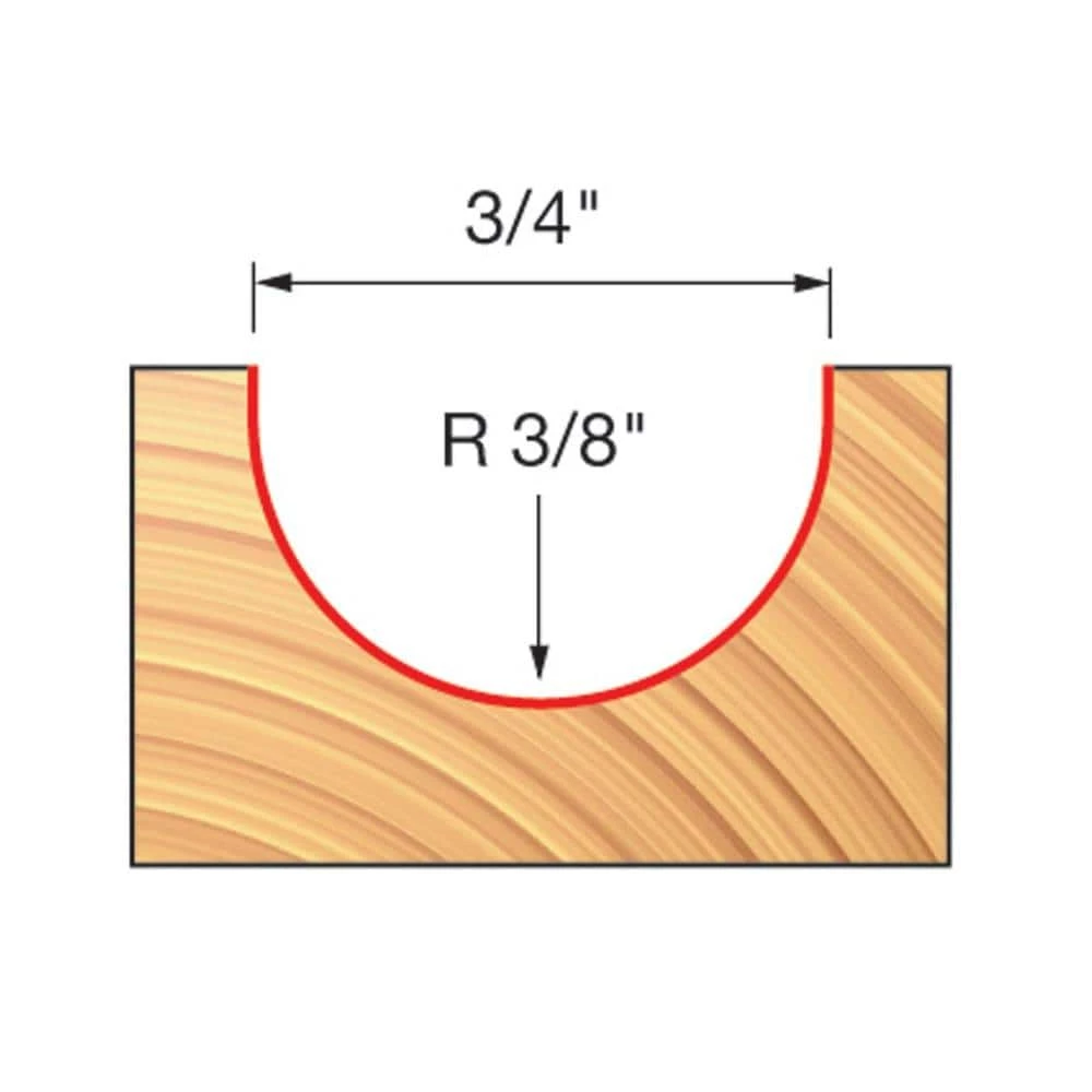 - Bit has a 3/4 in. cut diameter, 3/8 in. radius and 7/16 in. cut depth