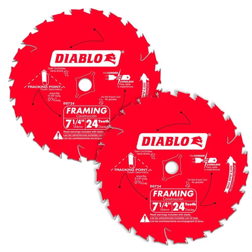 Next generation 7-1/4 in. 24 Teeth Framing Blade with Tracking Point Tooth design delivers maximum life and durability with effortless cutting performance. Up Your Cutting Game with this 1-of-a-kind Tracking Point tooth grind for unmatched cutting performance and efficiency. This is the only 7-1/4 in. blade on the market to include Tracking Point Tooth design, making it is ideal for framers, roofers, remodelers, concrete formers or anyone wanting ultimate cutting performance in pressure treated wood, 2X lumber, plywood, hardwoods and softwoods. With 5-times the cutting life performance compared to other framing blades, you can save up to $29.00.