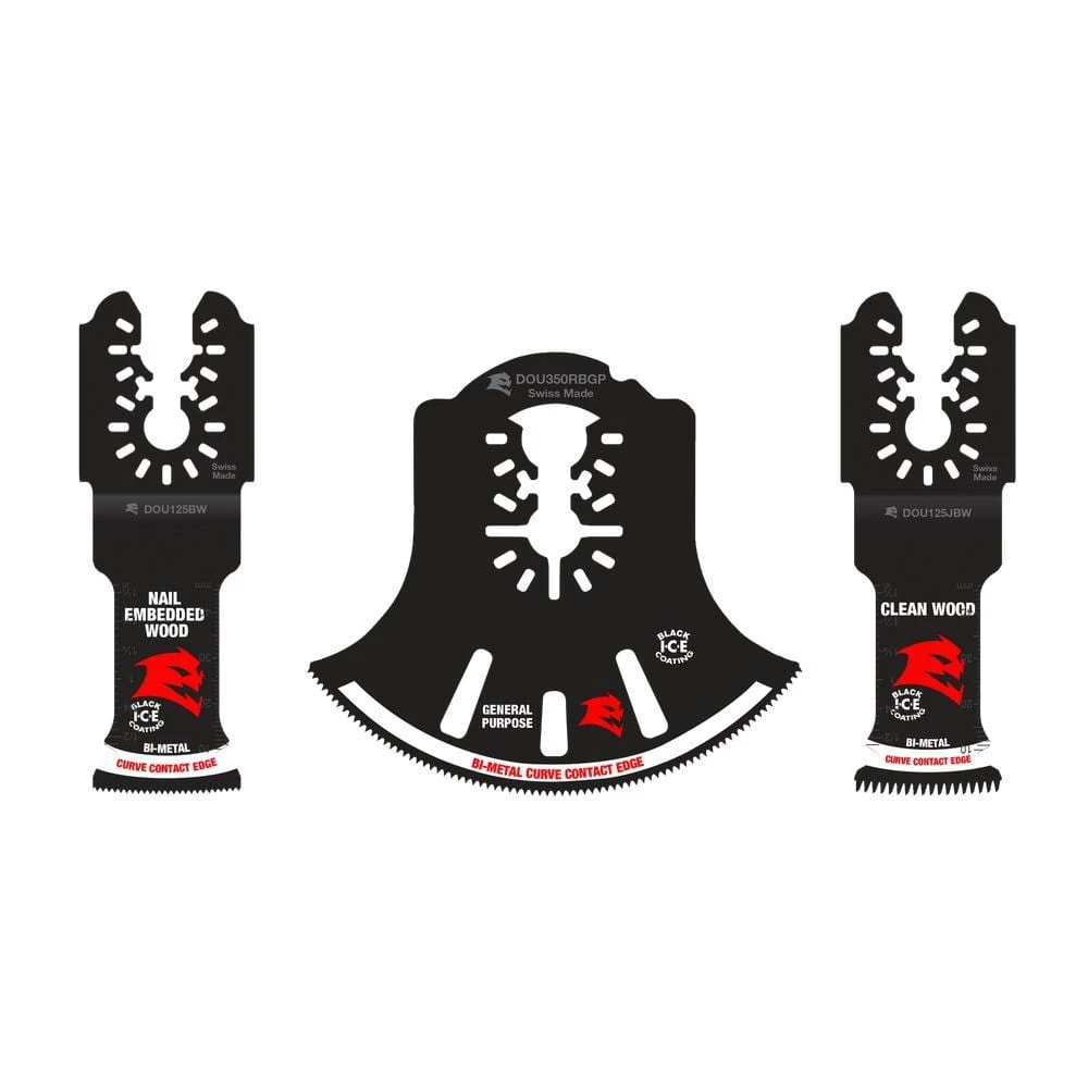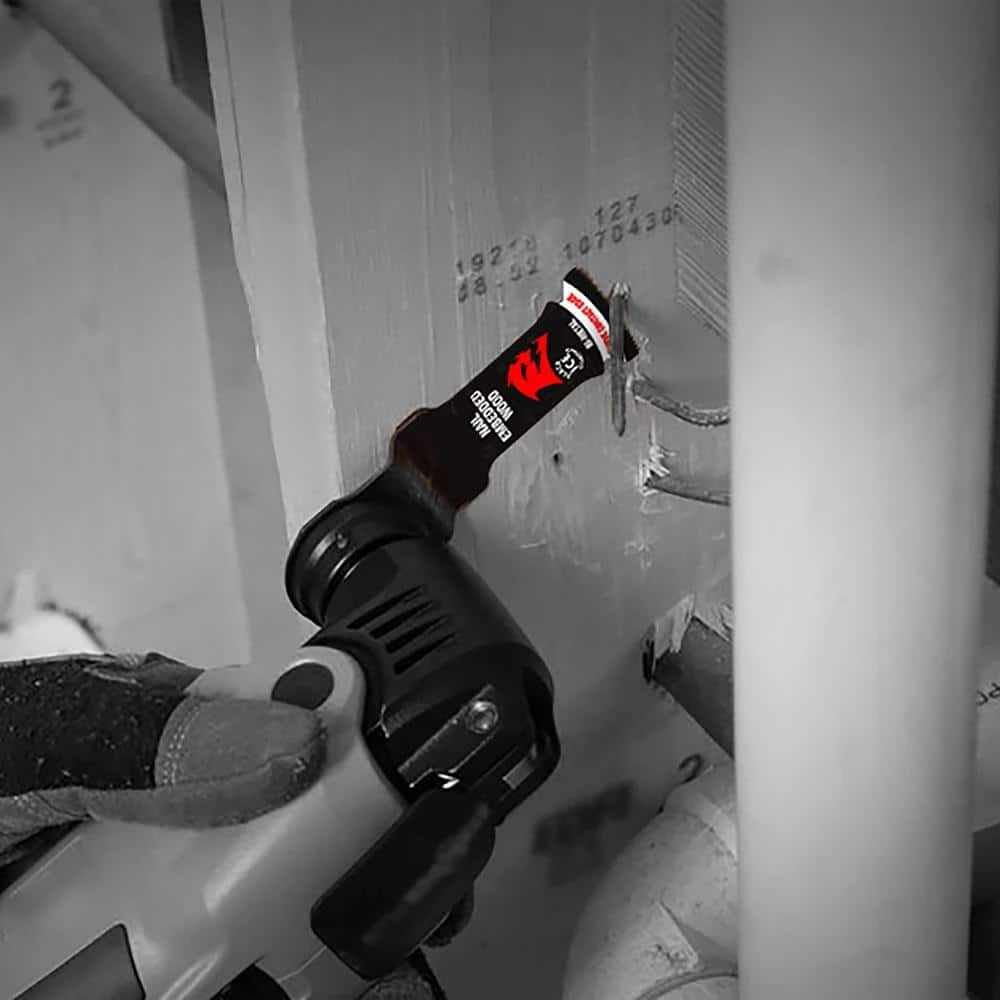 DIABLO’s universal fit bi-metal oscillating blades feature application specific designs that deliver extreme durability and superior cutting life in multiple applications ranging from nail-embedded wood, clean wood, metal and plastics. These high-performance blades feature an ultra-hardened cutting edge to deliver up to 5X longer life than standard blades. Curve contact edge creates a pilot for precise, clean plunge cuts with less vibration. An optimized blade design and Black I.C.E. (Industrial Cooling Element) keeps the teeth cool and build up free for fast, clean cuts. The blade’s universal fit, adapter-free design easily attaches to most tools, with the exception of Starlock tools.
